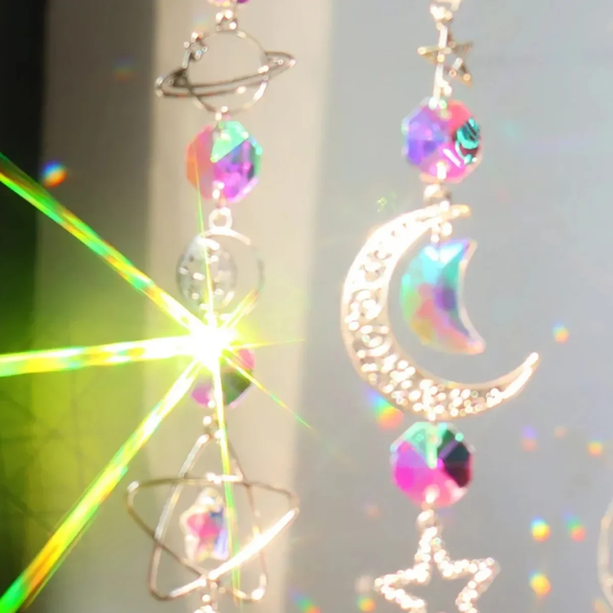 This crystal rainbow suncatcher wind chime adds beauty and sparkling light to any indoor or outdoor space. Crafted with clear crystal prisms, it captures sunlight and transforms it into stunning rainbow reflections. When placed near a sunny window or garden area, it fills the space with colorful light patterns. The elegant hanging design makes it perfect for windows, balconies, patios, and garden spaces. Its gentle movement in the breeze adds a calming and decorative touch to your surroundings. The crystal elements create a bright and eye-catching ornament even when the light is soft. Ideal for home decoration, holidays, and festive occasions, it brings charm and elegance to any environment. It also makes a thoughtful gift for friends, family, or anyone who enjoys unique decorative accents. Enhance your home or garden with this beautiful crystal rainbow maker wind chime. ✨